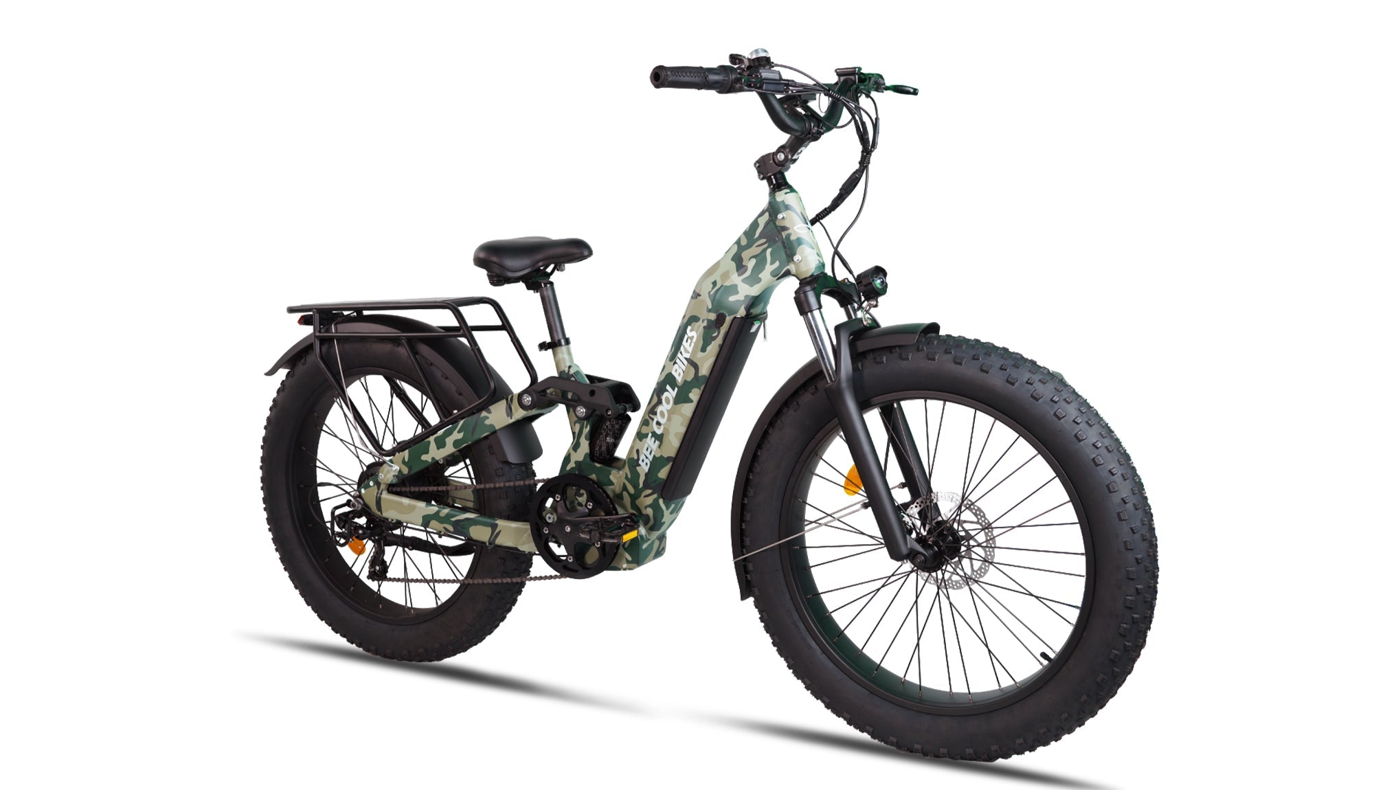 The brand-new Horst link full suspension system, paired with 26” x 4.8” super fat tires, ensures control, comfort, and stability across all terrains — whether commuting, exploring, or trail riding. And thanks to its low step-thru frame, mounting and dismounting is easy for riders of all heights.