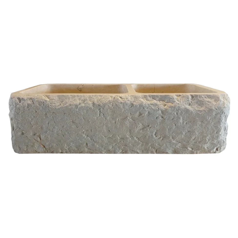 Botticino Beige Marble Farmhouse Apron Kitchen Double Sink (W)16" (L)32" (H)10"