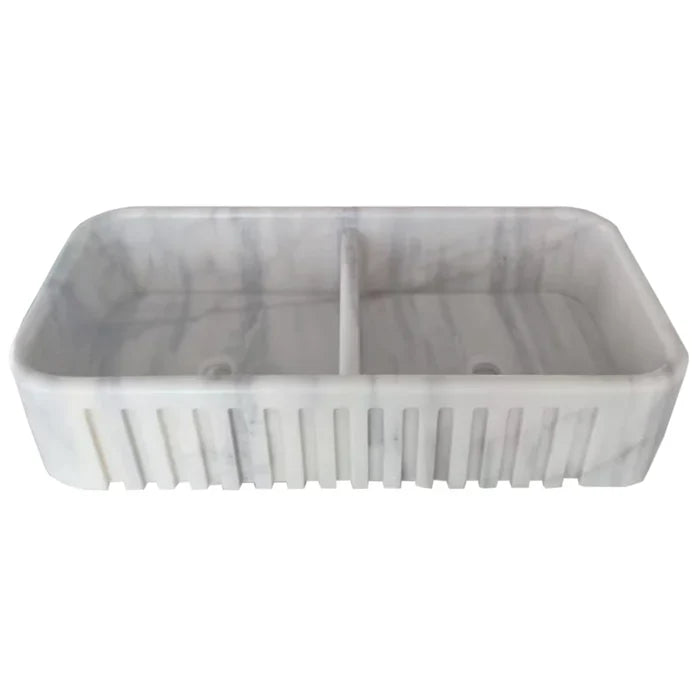 Carrara White Marble Farmhouse Apron Kitchen Double Sink (W)18" (L)36" (H)8" offers;