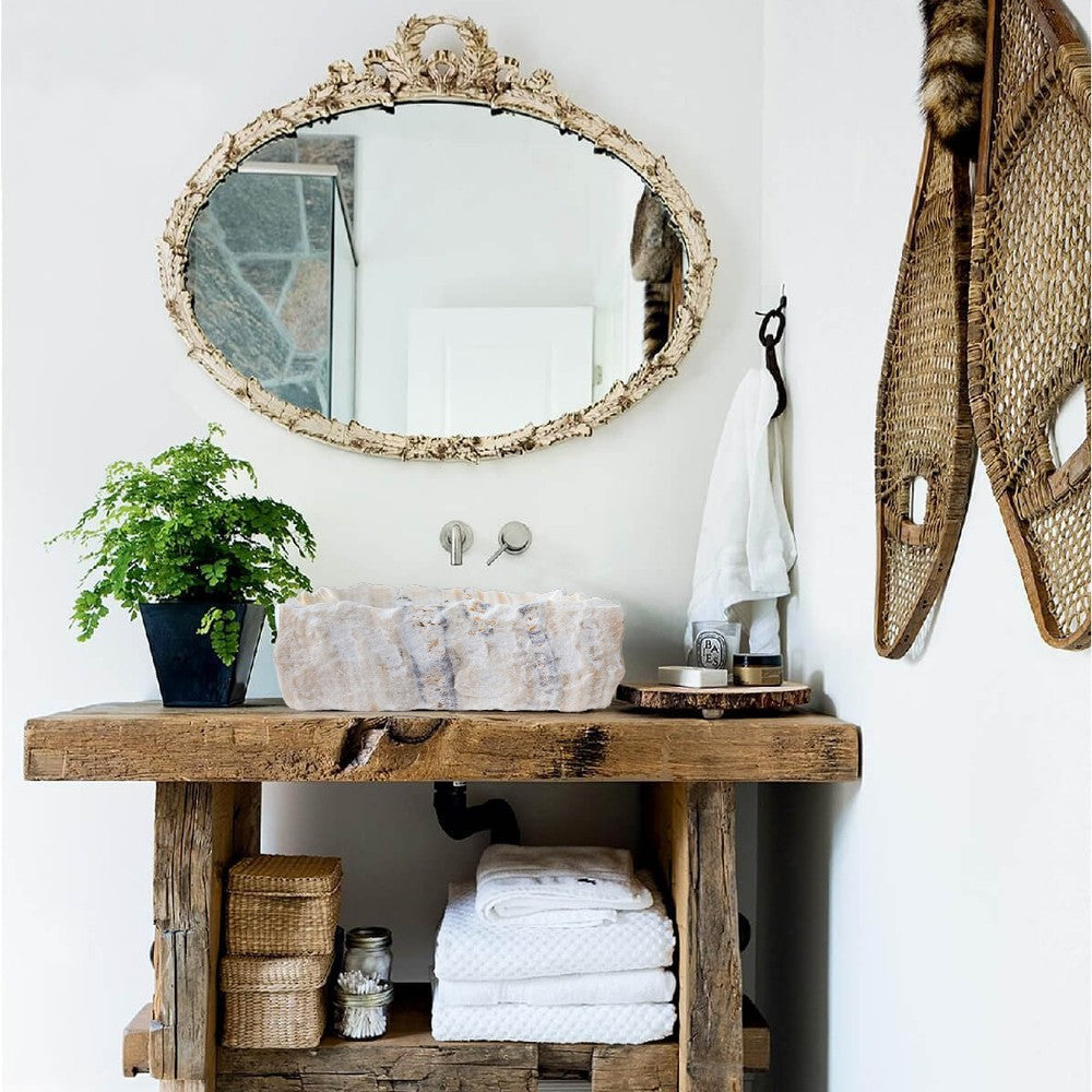 Honey Onyx Rustic Natural Stone Vessel Sink (W)13" (L)16" (H)5.5"