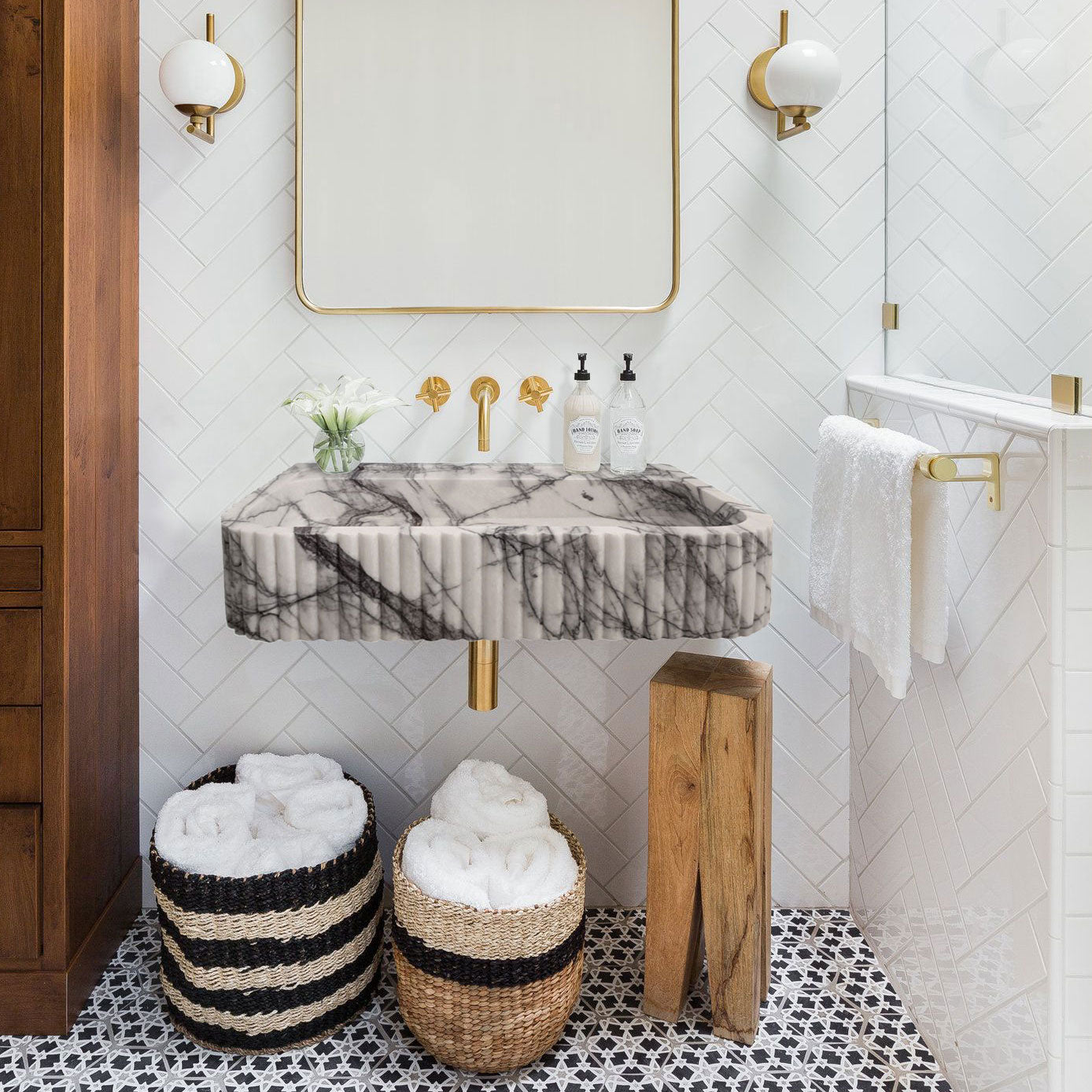 New York Marble Wall-mount Bathroom Sink Ribbed Textured (W)14" (L)24" (H)6"