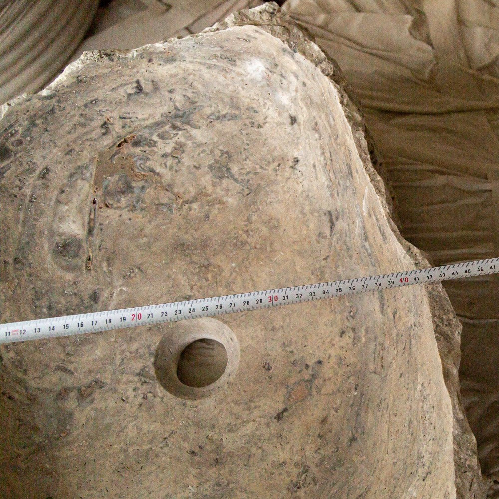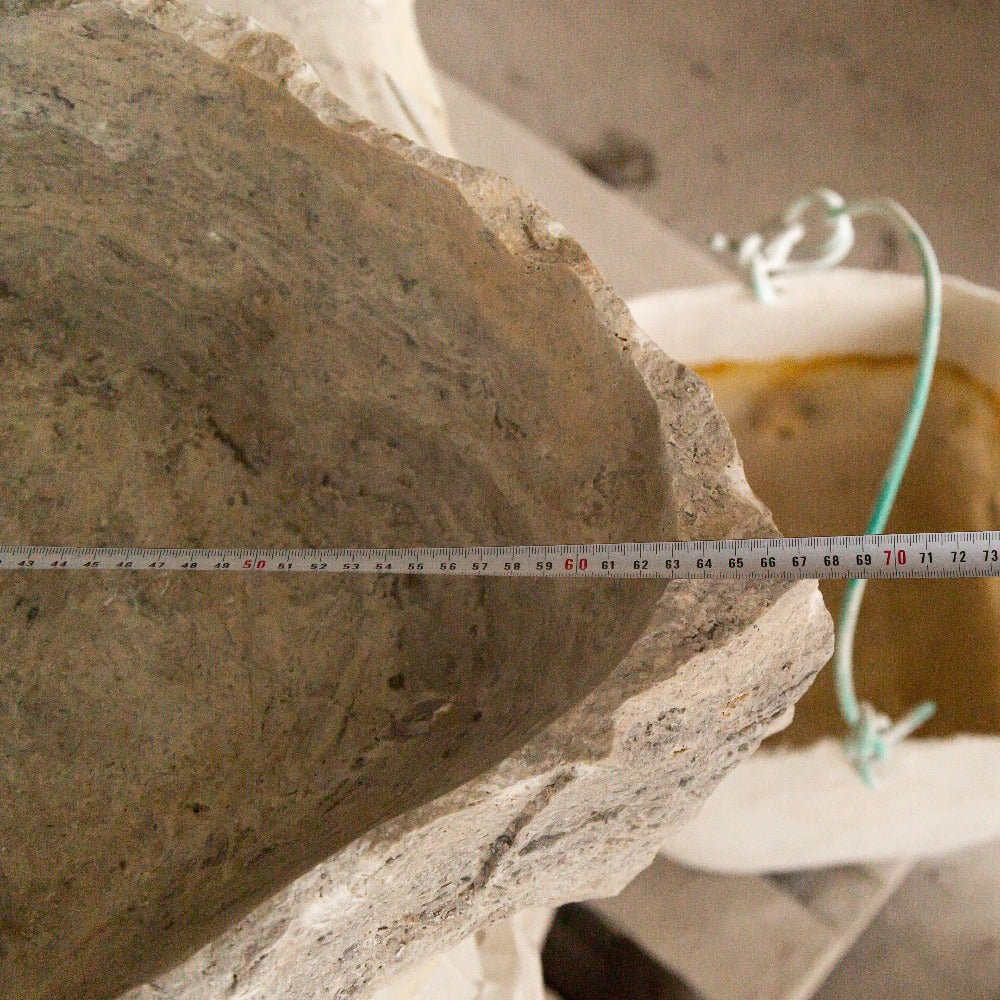 Silver Travertine Rustic Natural Stone Vessel Sink Polished Interior Hand Chiseled Exterior (W)16" (L)26" (H)5"