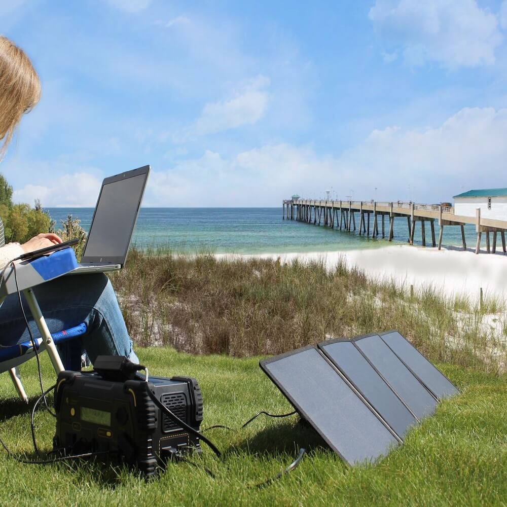 Weighing only 3 lbs and folding down to just 11.25" x 11.25", it’s perfect for camping, hiking, traveling, tailgating, or emergency backup. With kickstands for easy positioning, durable monocrystalline panels, and multiple connection options, the Lion 50W panel is built for convenience and performance