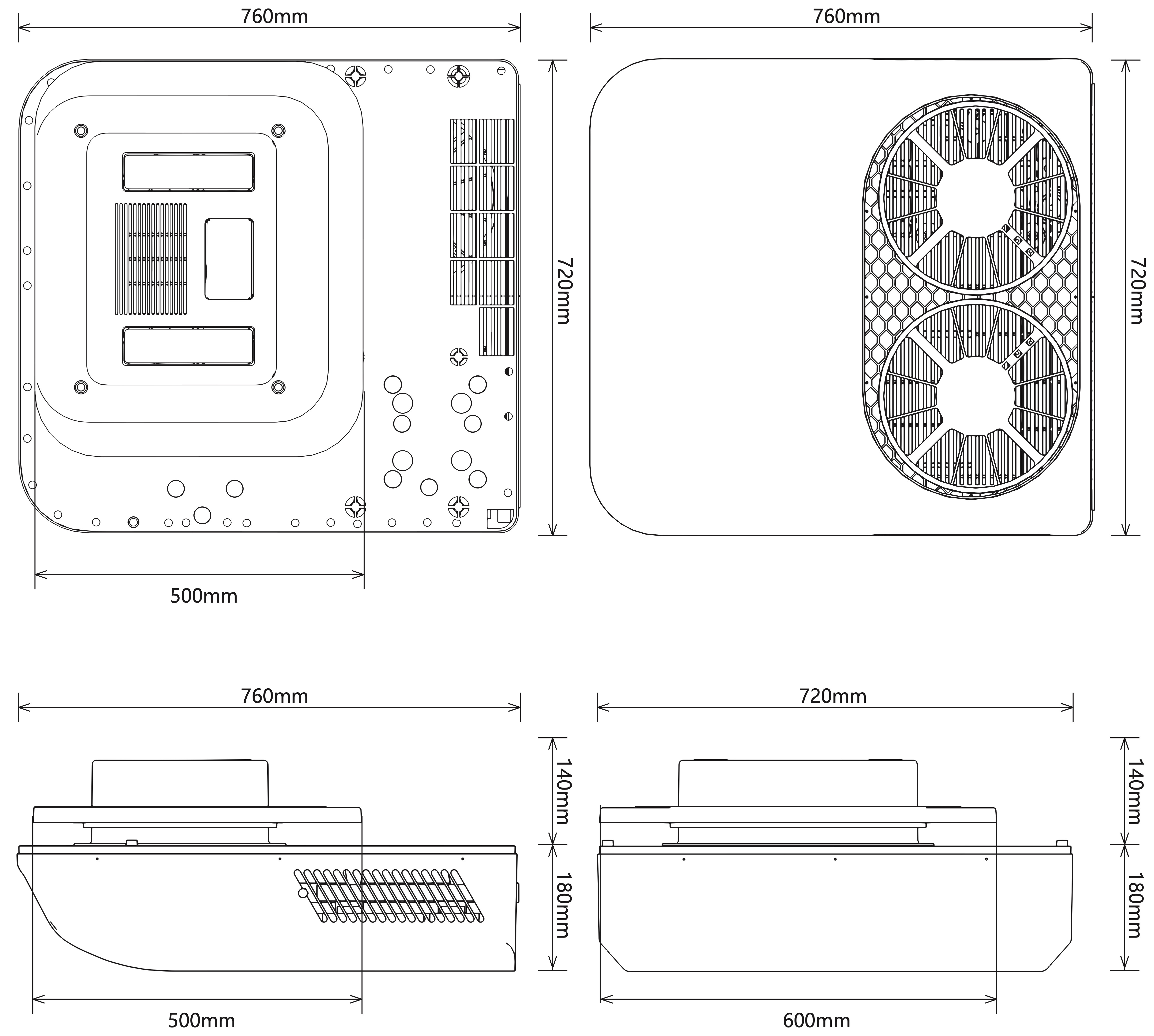 Perfect for retrofitting minivans and tractor trailers, as well as possible uses in small sheds, outdoor utility cabinets, or any place that needs a battery powered reliable air conditioner on the roof. Every unit comes filled, tested, ready to use out of the box. Just cut a hole or use the existing skylight hole in your roof, and enjoy immediate cooling.