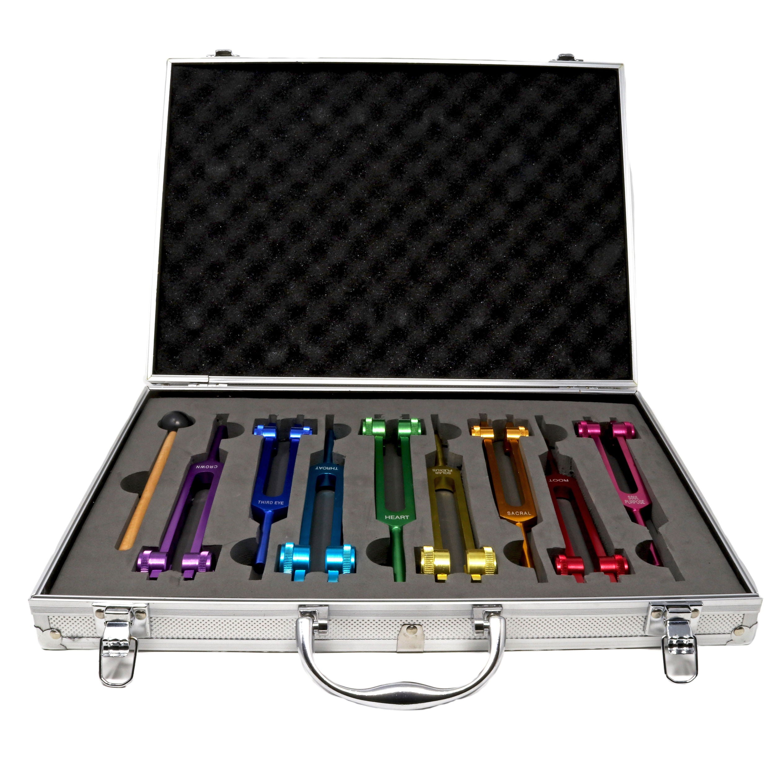 The Colored Metal Tuning Forks set is a unique and beautiful sound experience for musicians of all levels. Made of premium metal, this set of 8 forks offers a range of hertz frequencies for vibrational sound therapy and aligning chakras. Use them to learn about musical notes and theory, or for relaxation. Each fork comes with a mallet and silver case for easy storage. A powerful tool for increasing body awareness and bringing energies into alignment.