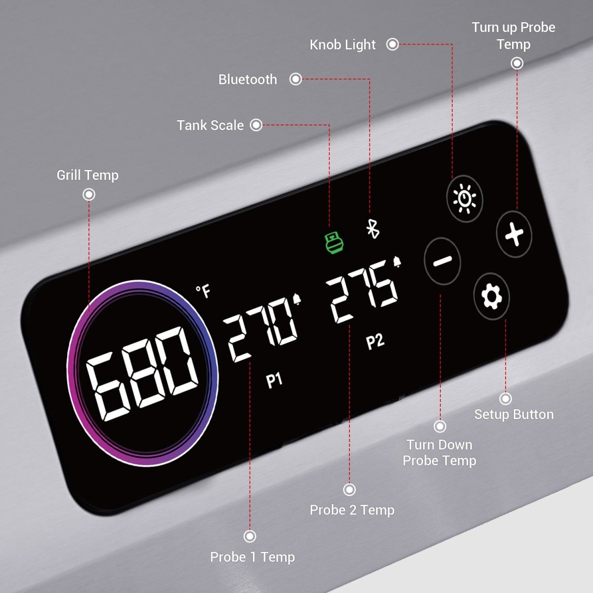 - Creative sensor lights: noticeable indications with customizable sensing knob lighting to better assist your grilling.