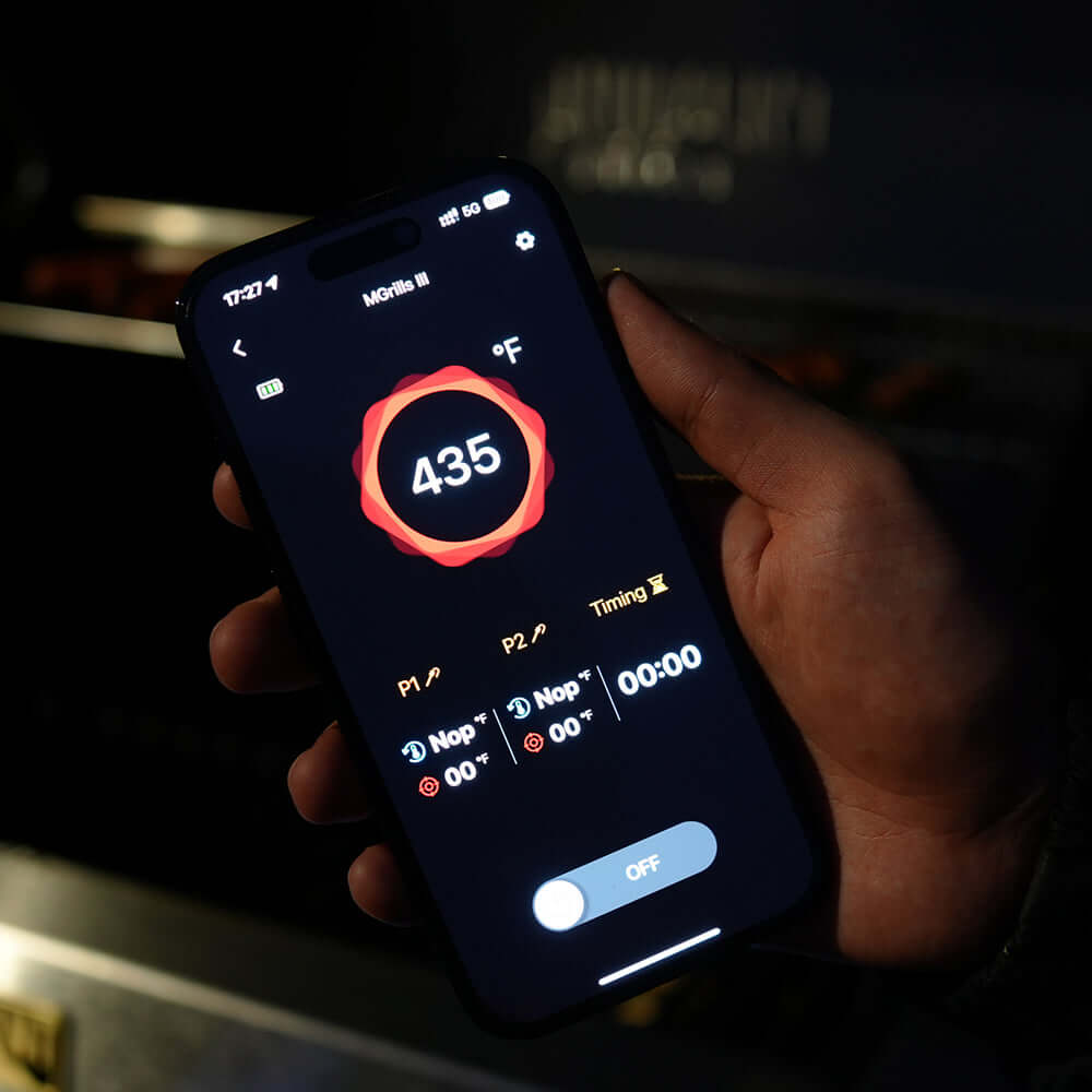 - Bluetooth app for temperature readings, alerts, and timer settings.