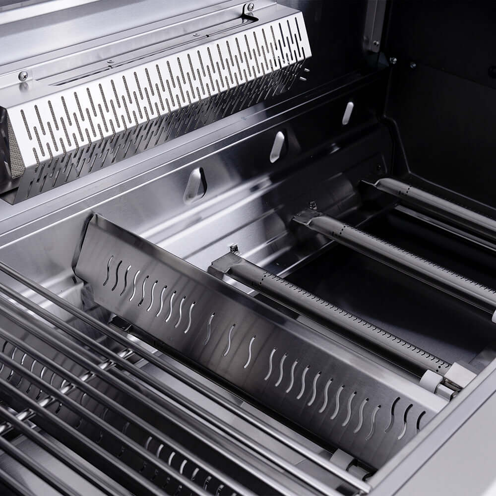 - 6 * Blade-Infrared burner + 1 built-in ceramic rear infrared burner + 1 side searing station, 89,000 BTUs.