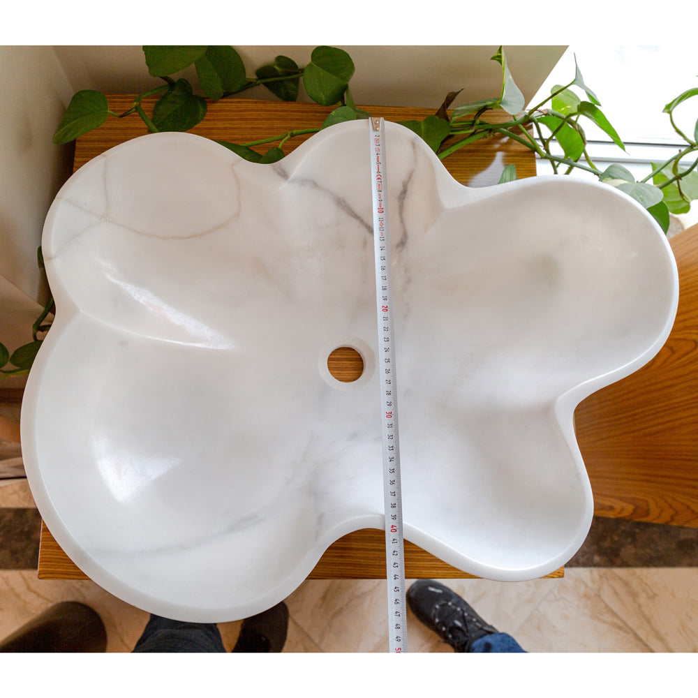 Flower shape vessel sink can install above the counter for a modern look. If you want a different appearance and save area in your bathroom, you can feel free to prefer natural stone vessel sinks.