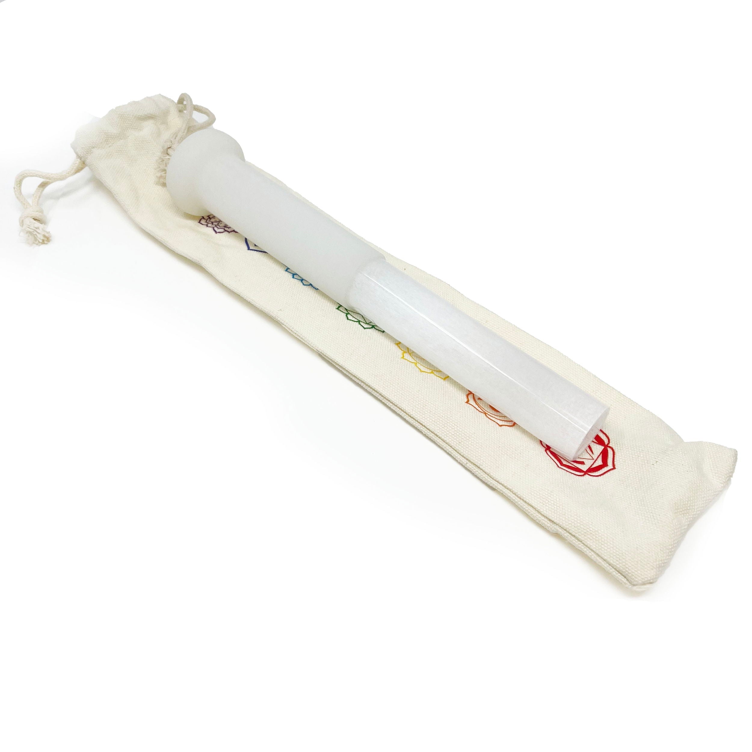 Introducing the Silicone Striker Tool: the ultimate companion for crystal singing bowls. Hand-blown with quartz, this tool is designed to evoke soothing and therapeutic sounds. Its natural look and feel gently stimulate and restore energy in your body. Perfect for sound healing and wellness routines, it enhances your practice by producing calming vibrations. Complete with a beautiful chakra bag, it's a must-have for crystal bowl enthusiasts.